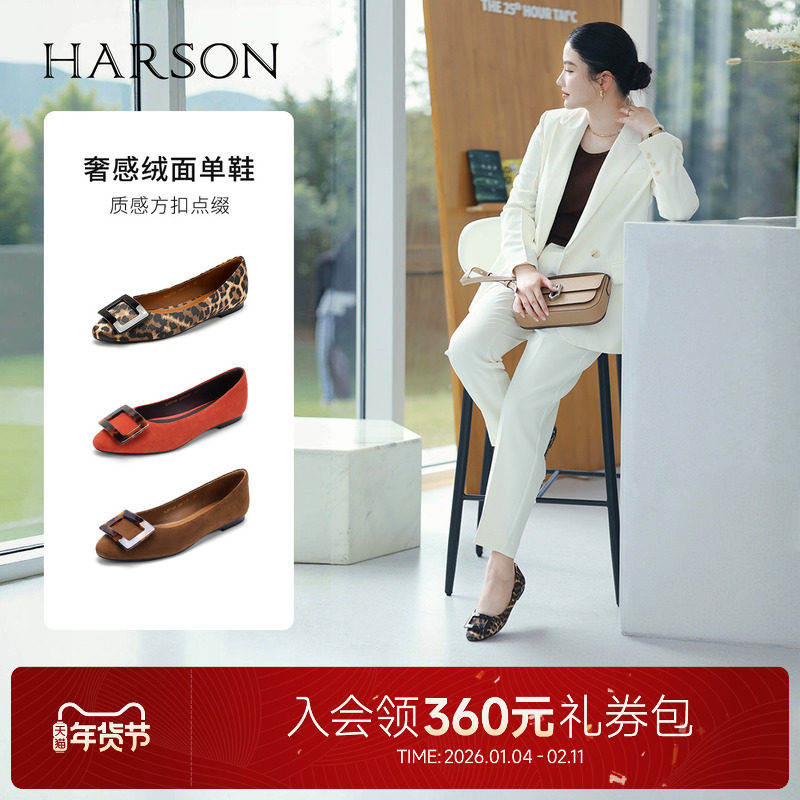哈森/HARSON【南法假日】25秋新款豹纹低跟方扣浅口单鞋舒适女鞋