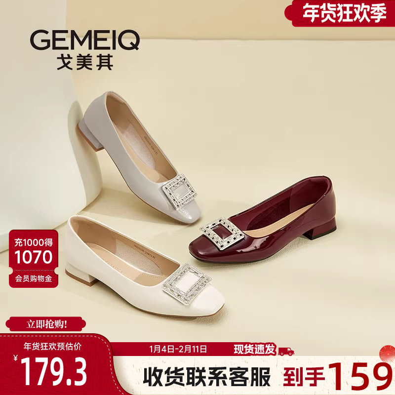 戈美其商场同款水钻方扣浅口单鞋女2025新款配裙子粗跟通勤女鞋子