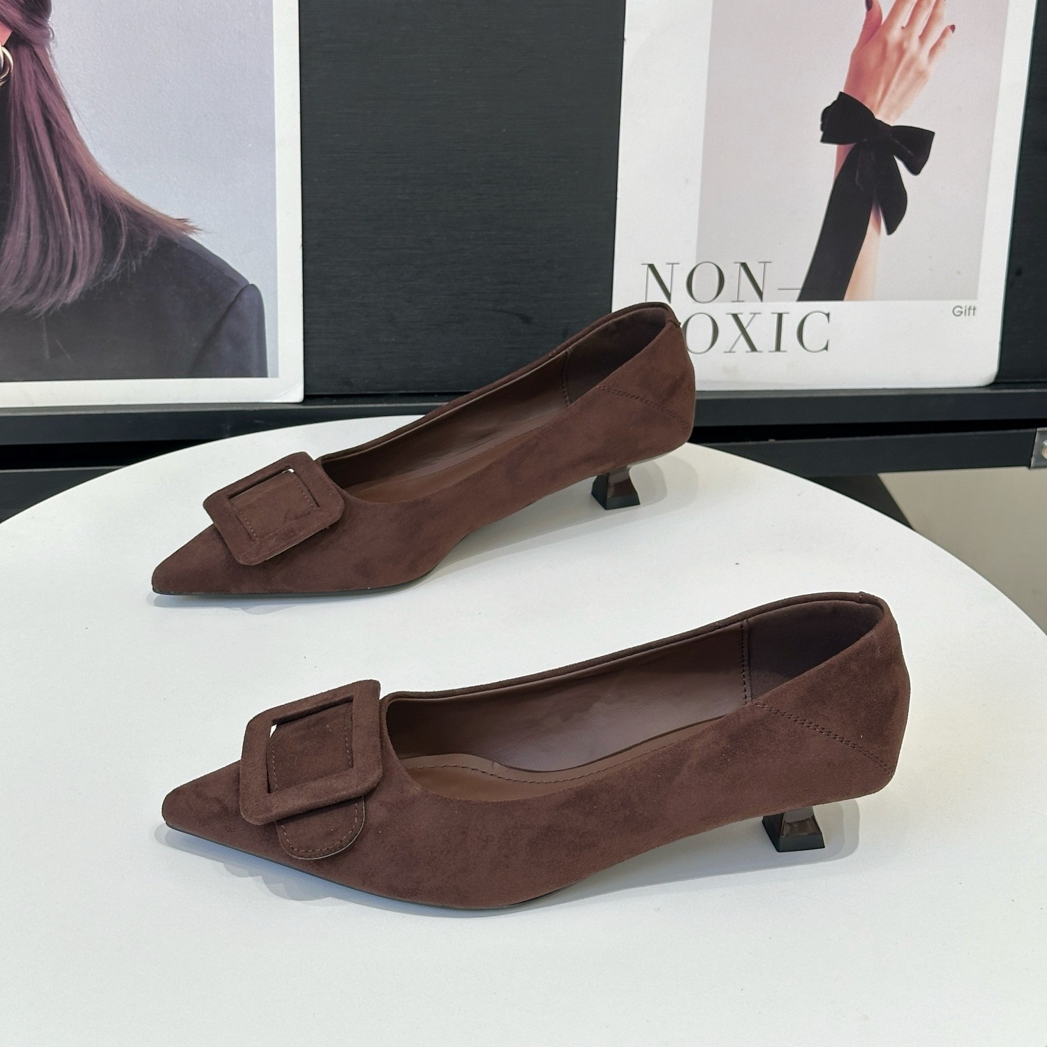 - 绒面粗跟高跟单鞋