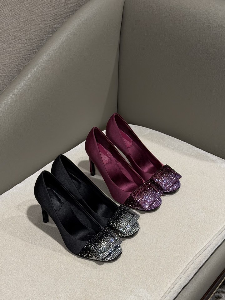2025年春秋季新款尖头水钻扣细跟高跟鞋女气质通勤方扣浅口单鞋