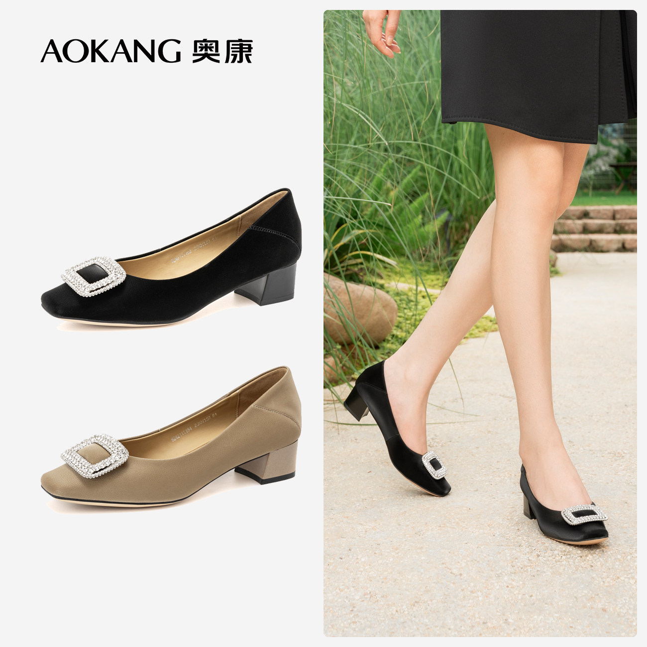 奥康 女鞋2026春季新款通勤法式细高跟鞋百搭方扣浅口单鞋女