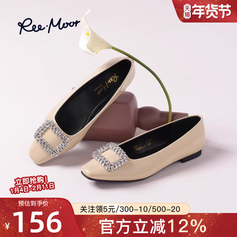 reemoor水钻方扣浅口单鞋女平底方头通勤鞋舒适百搭女鞋睿慕