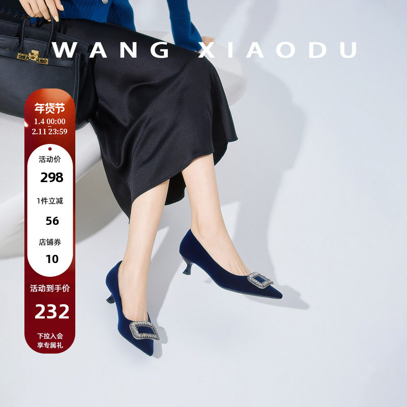 小雨家早春法式水钻方扣浅口单鞋女圆头绸缎面婚鞋宴会礼仪高跟鞋