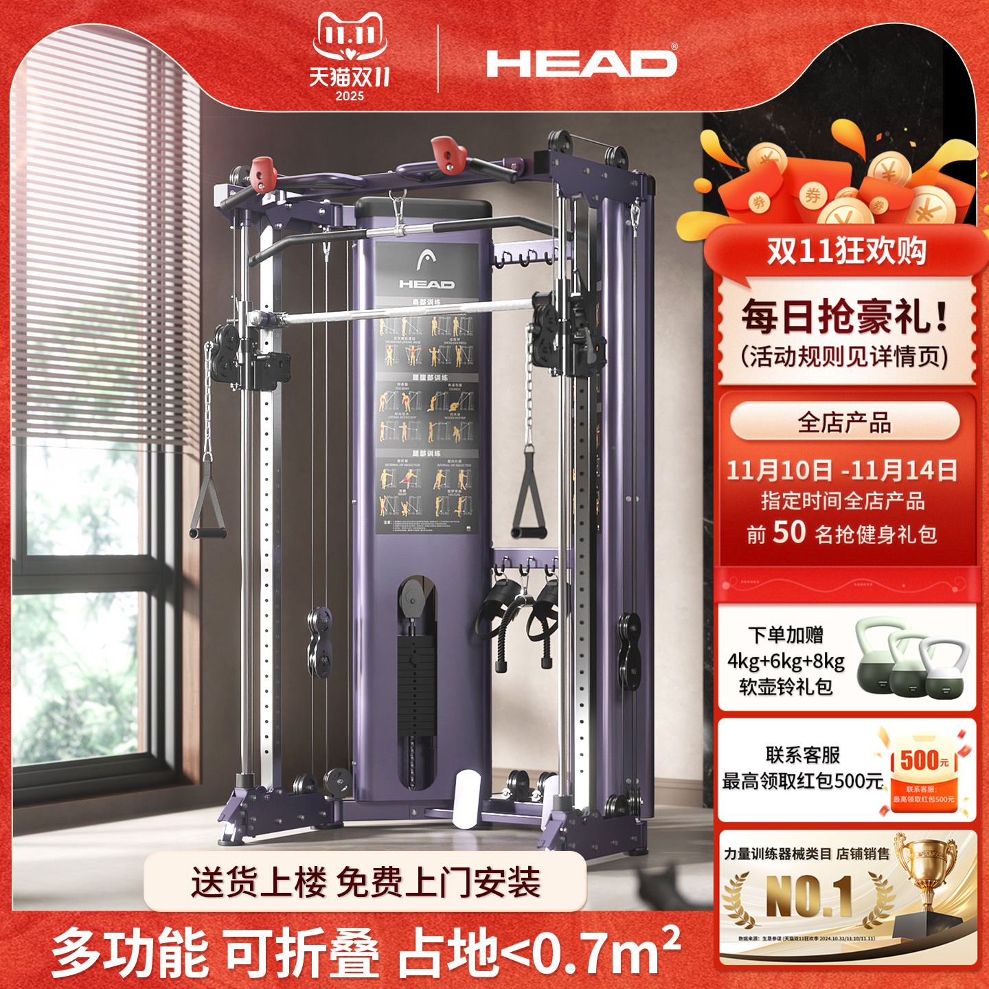 HEAD海德龙门架家用健身房多功能卧推架飞鸟史密斯机综合训练器材
