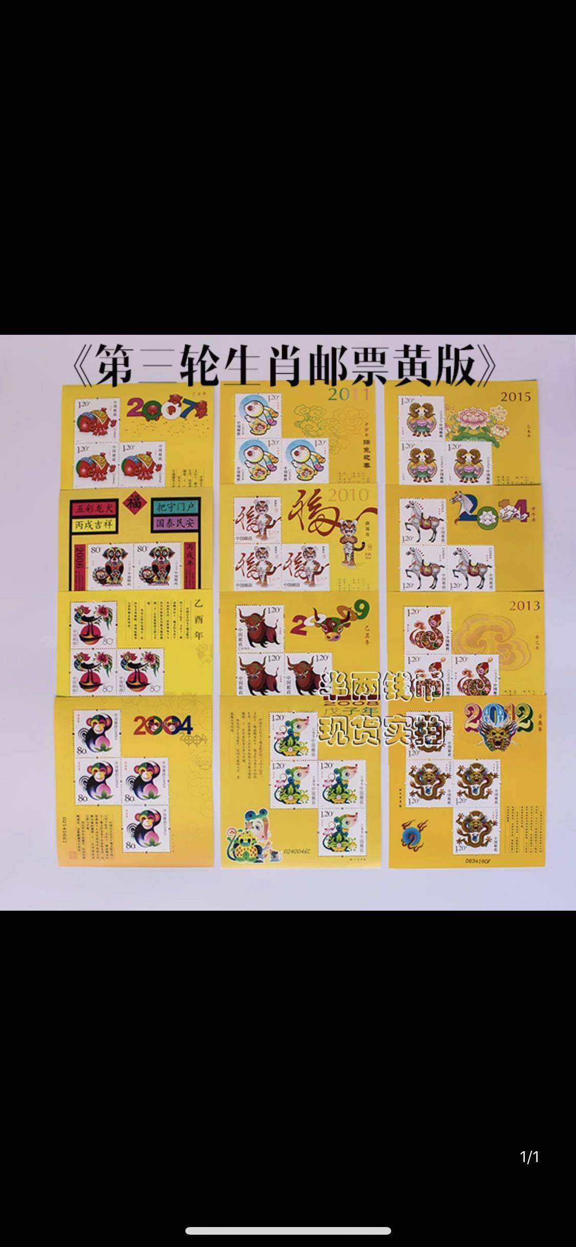 第三轮生肖邮票黄版大全套猴鸡狗猪鼠牛虎兔龙蛇马羊邮票小版12全
