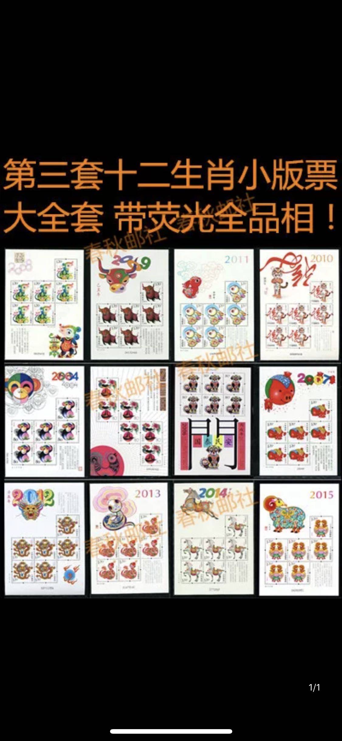第三轮生肖邮票小版大全套猴鸡狗猪鼠牛虎兔龙蛇马羊邮票小版12全