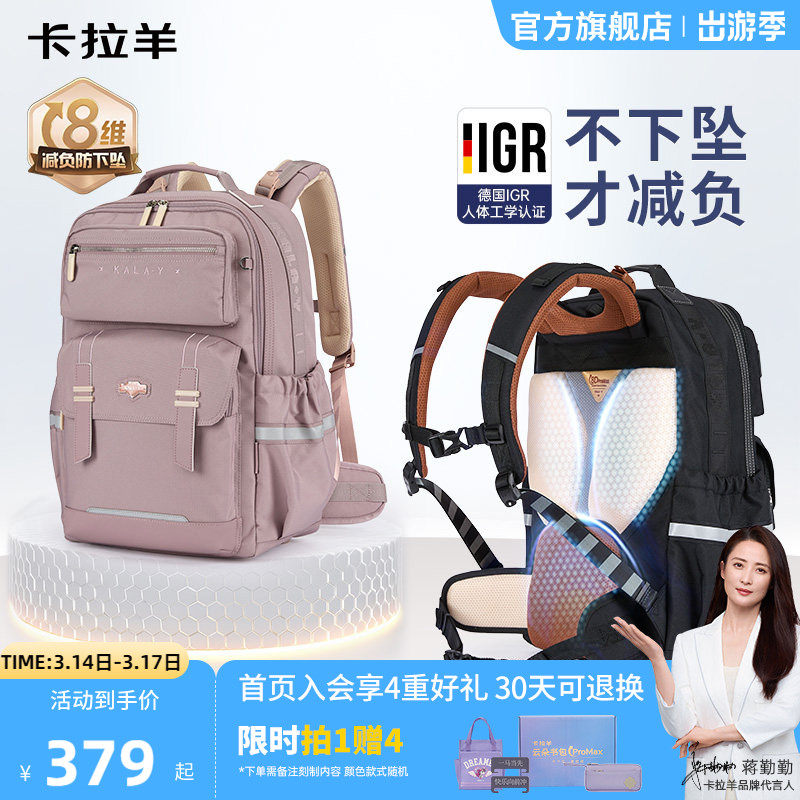 卡拉羊中学生书包减负风琴书包男女生青少年书包小学生书包儿童双肩包男孩大容量女孩防水书包品牌旗舰正品