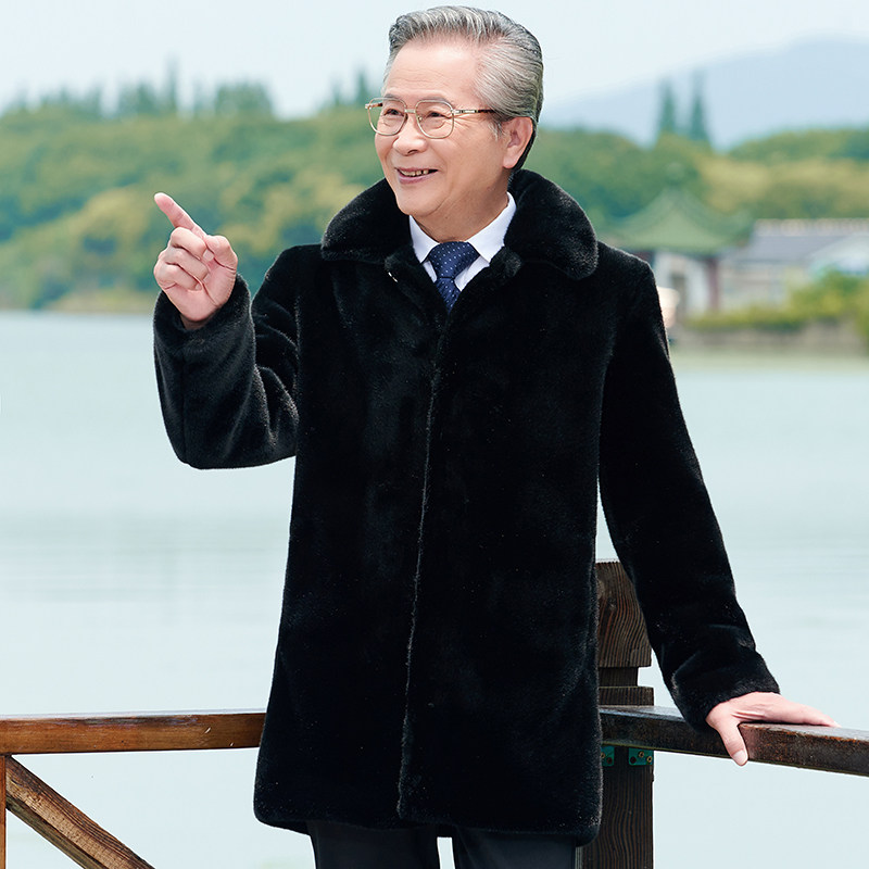 水貂绒大衣加厚保暖中老年皮草男装仿貂绒皮衣中长款爸爸秋冬外套