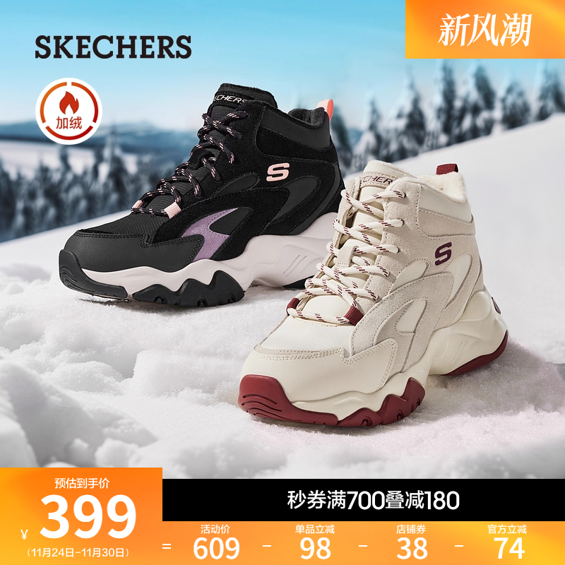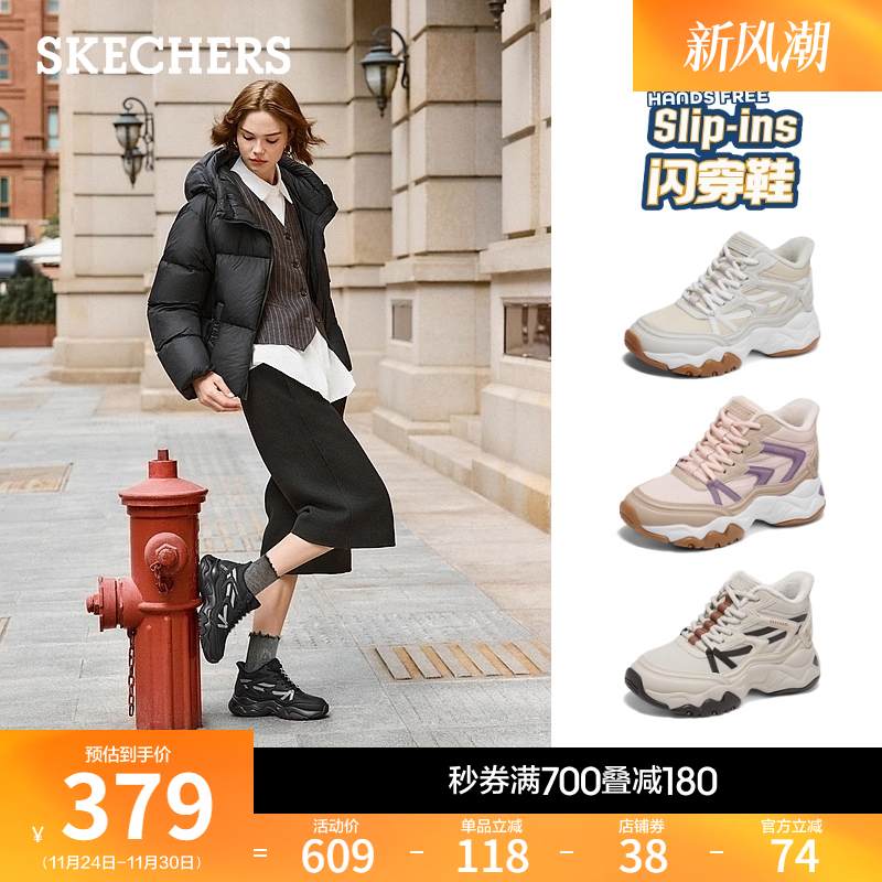 斯凯奇闪穿鞋|2025冬季新款女老爹鞋休闲运动鞋加绒保暖中高帮鞋
