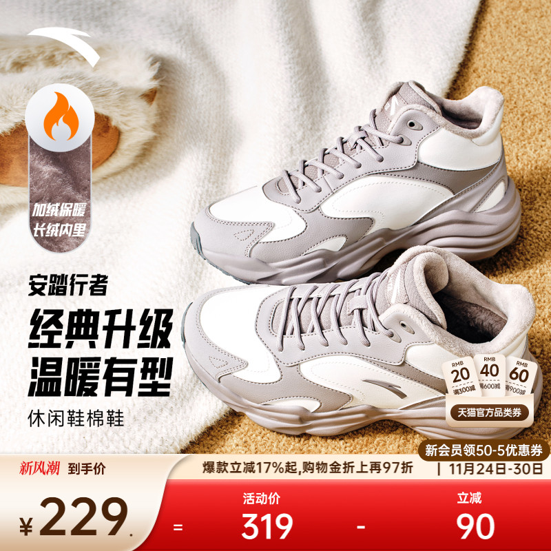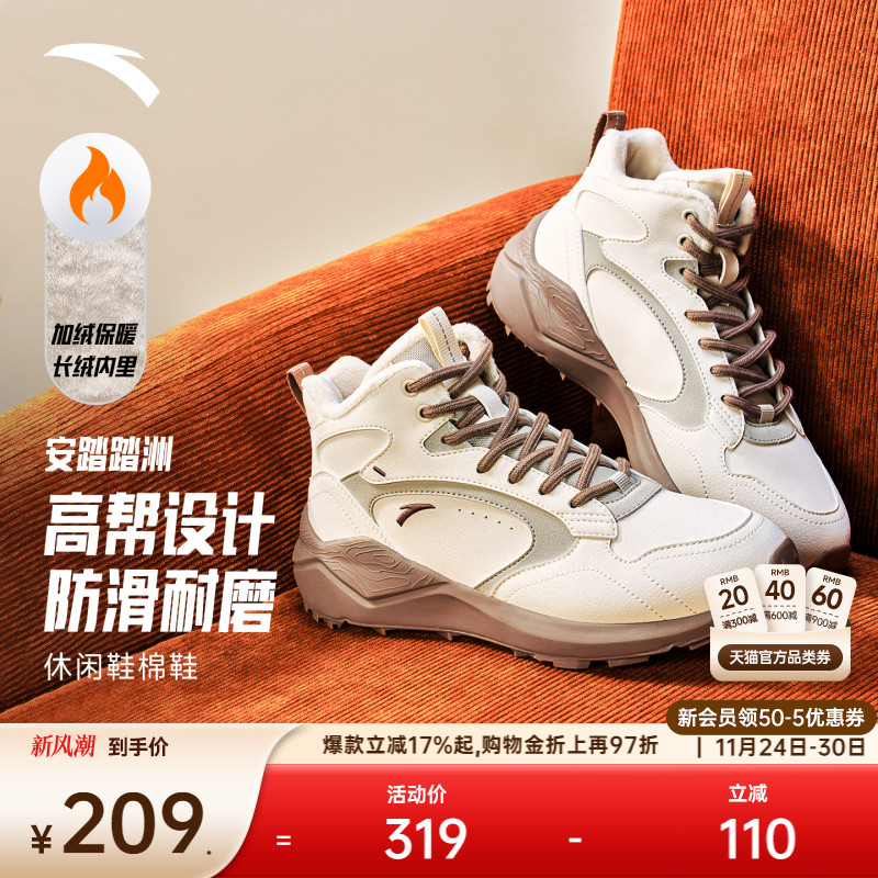 安踏行者丨高帮加绒保暖二棉鞋女2025冬季新款加厚棉鞋休闲运动鞋