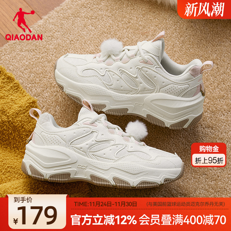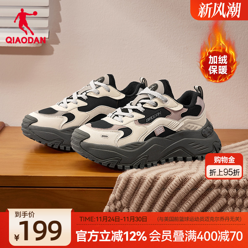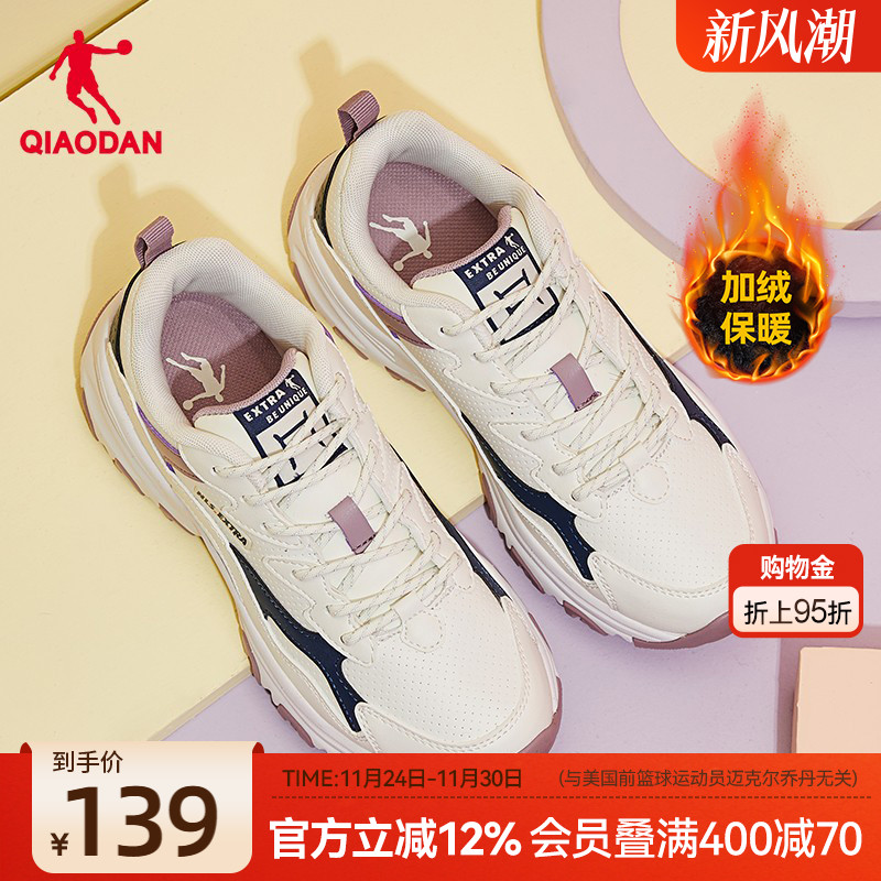 乔丹皮面运动鞋女加绒保暖休闲鞋2025冬季增高鞋子熊猫防水老爹鞋