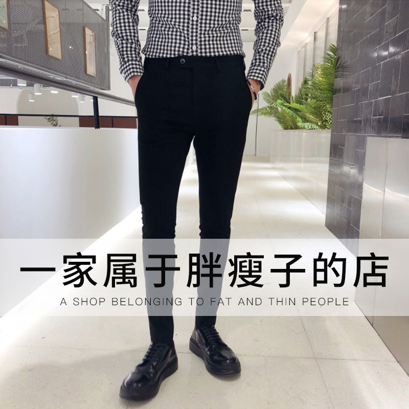 小西裤男修身小脚秋冬职业韩版休闲西装裤弹力胖子加肥加大码长裤