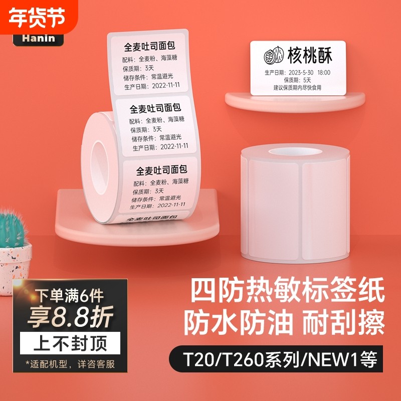 汉印T260小方盒/T20/New1四防热敏标签纸自动识别大小 便携标签机打印纸食品不干胶条码贴纸服装吊牌防水防撕