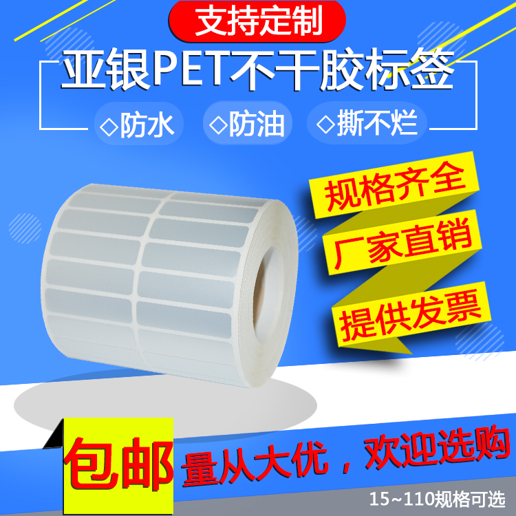 哑银PET标签纸亚银不干胶条码贴纸 40*6 40*8 35*6消银龙PVC 50*8