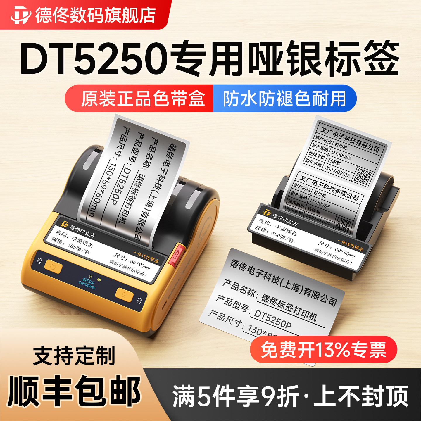 【5250打印机专用】德佟印立方DT-5250热转印一体式哑银标签色带盒固定资产不干胶条码贴纸防晒防褪色含碳带