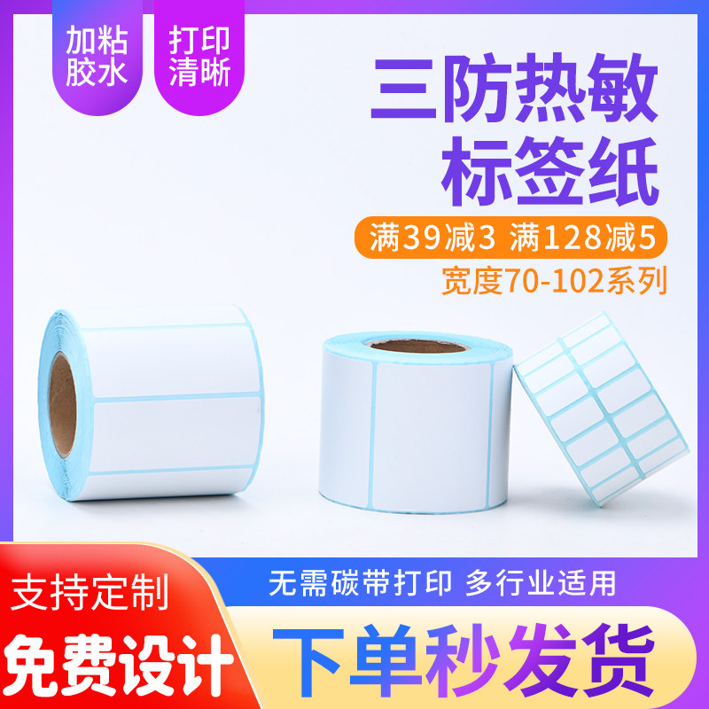三防热敏标签纸不干胶热敏纸打印纸贴纸电子秤纸称条码40*30 50 60 70 80 90 100x150电子面单快递E邮宝防水