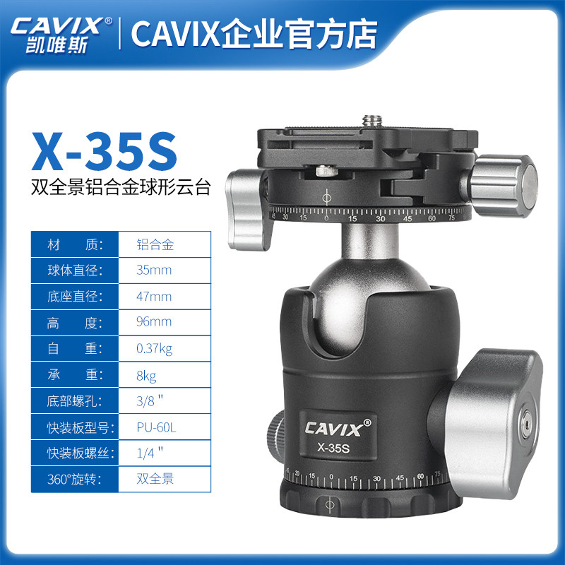 凯唯斯CAVIX X-35S单反相机雅佳规格双全景球形 阻尼云台