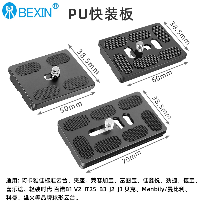 贝欣通用快装板三脚架云台铝合金材质阿卡雅佳标准加长板微单反相机手机支架配件