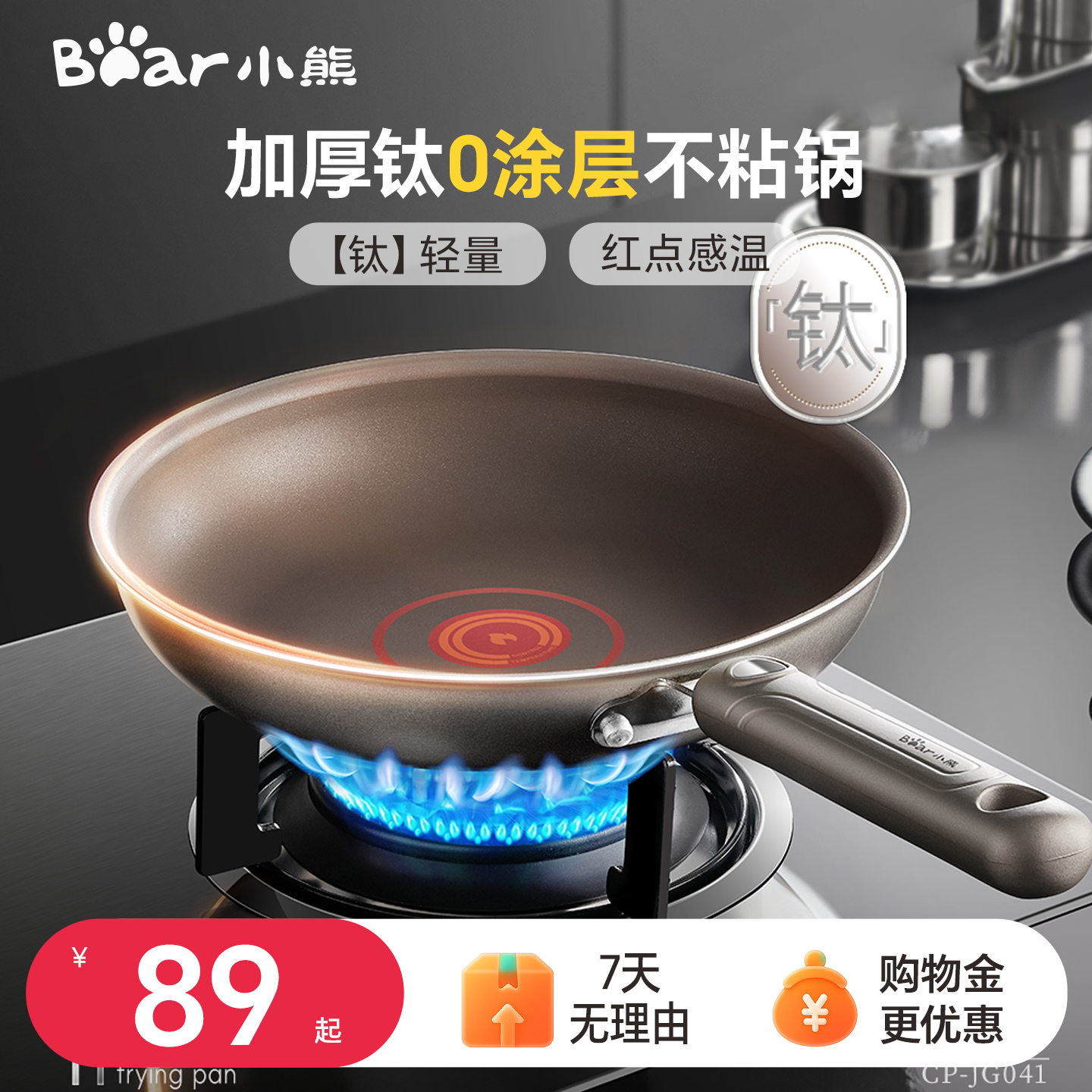 小熊钛陶瓷不粘锅免开锅炒菜锅电磁炉锅锅具炒锅铁锅家用炒菜新品