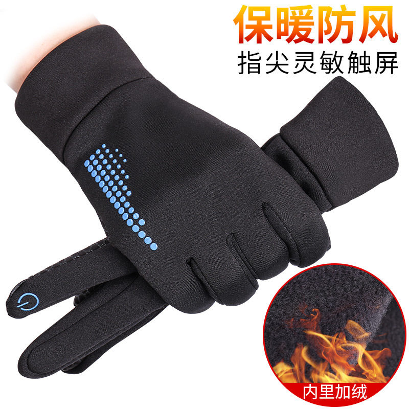 东途骑行保暖公路山地车手套单车户外电瓶车抓绒长指防风防寒手套