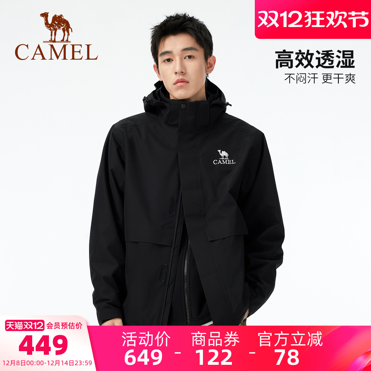 骆驼男装夹克春秋保暖三合一户外三防冲锋衣外套内胆防水徒步登山