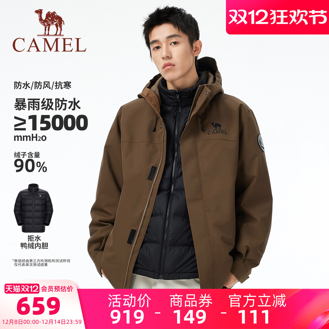 骆驼男装冲锋衣男户外夹克外套三合一三防羽绒内胆徒步登山透气冬