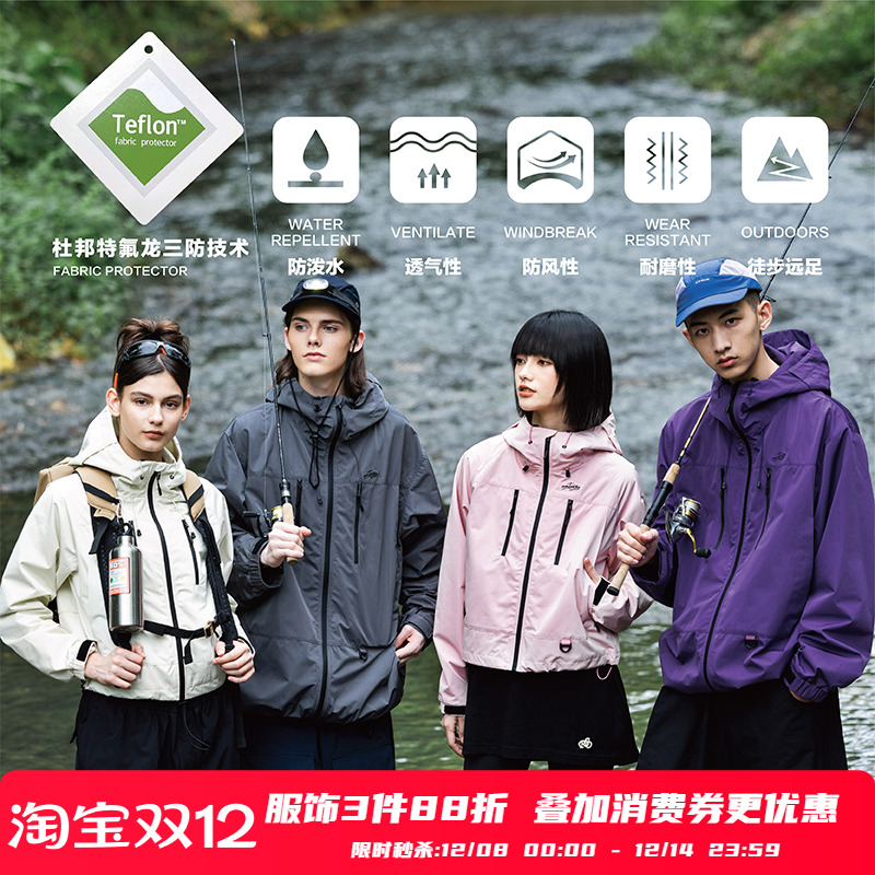 361男装2025秋冬新款户外登山服冲锋衣运动风衣情侣舒适运动外套