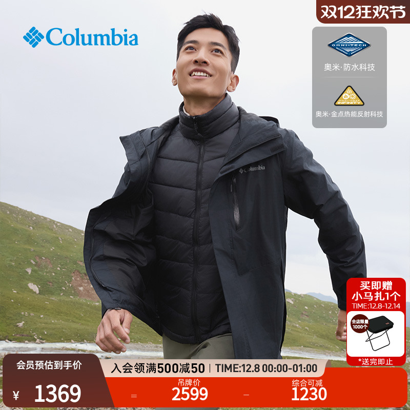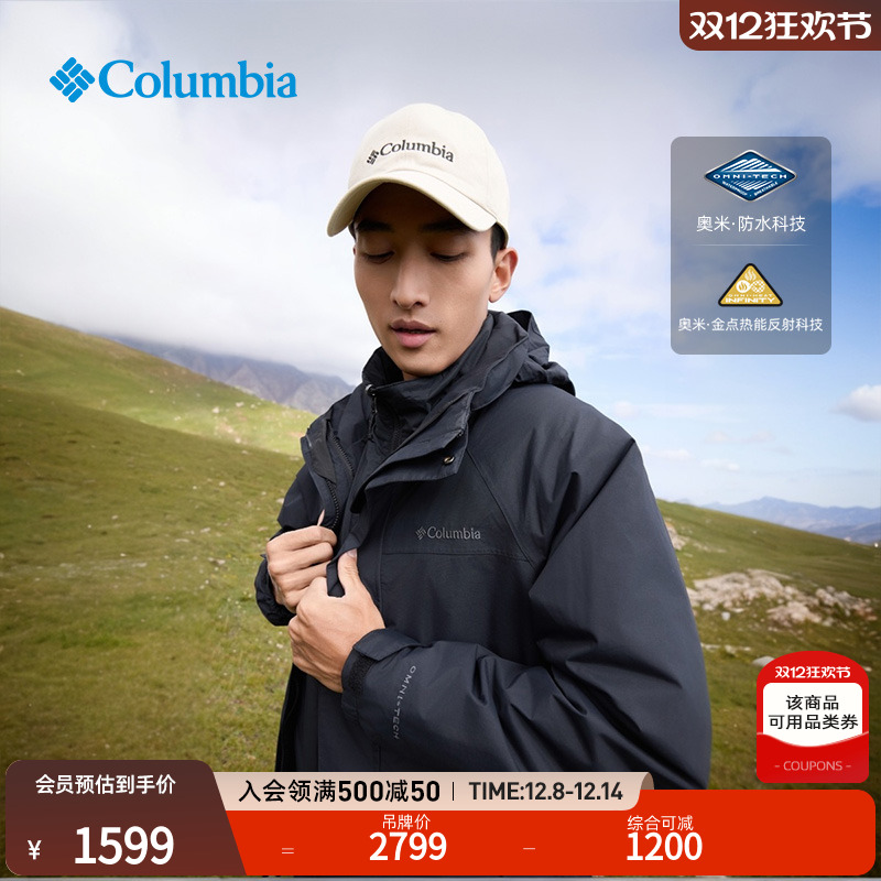 哥伦比亚户外25秋冬新品男装金点三合一夹棉内胆防水冲锋衣XE2198