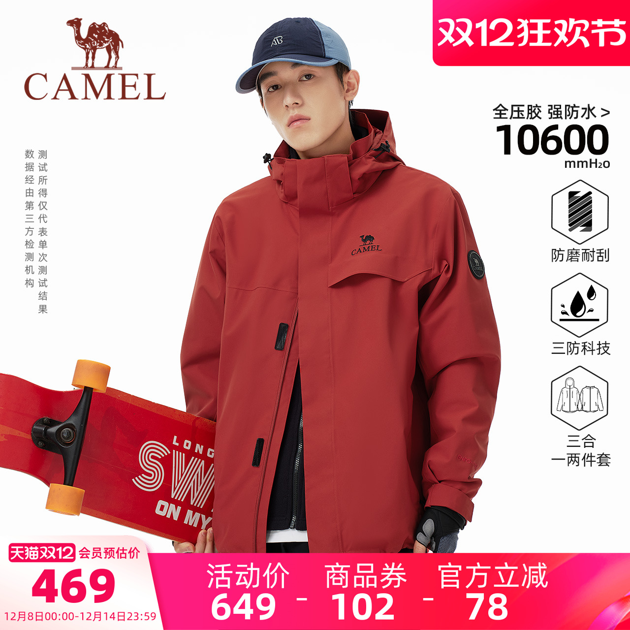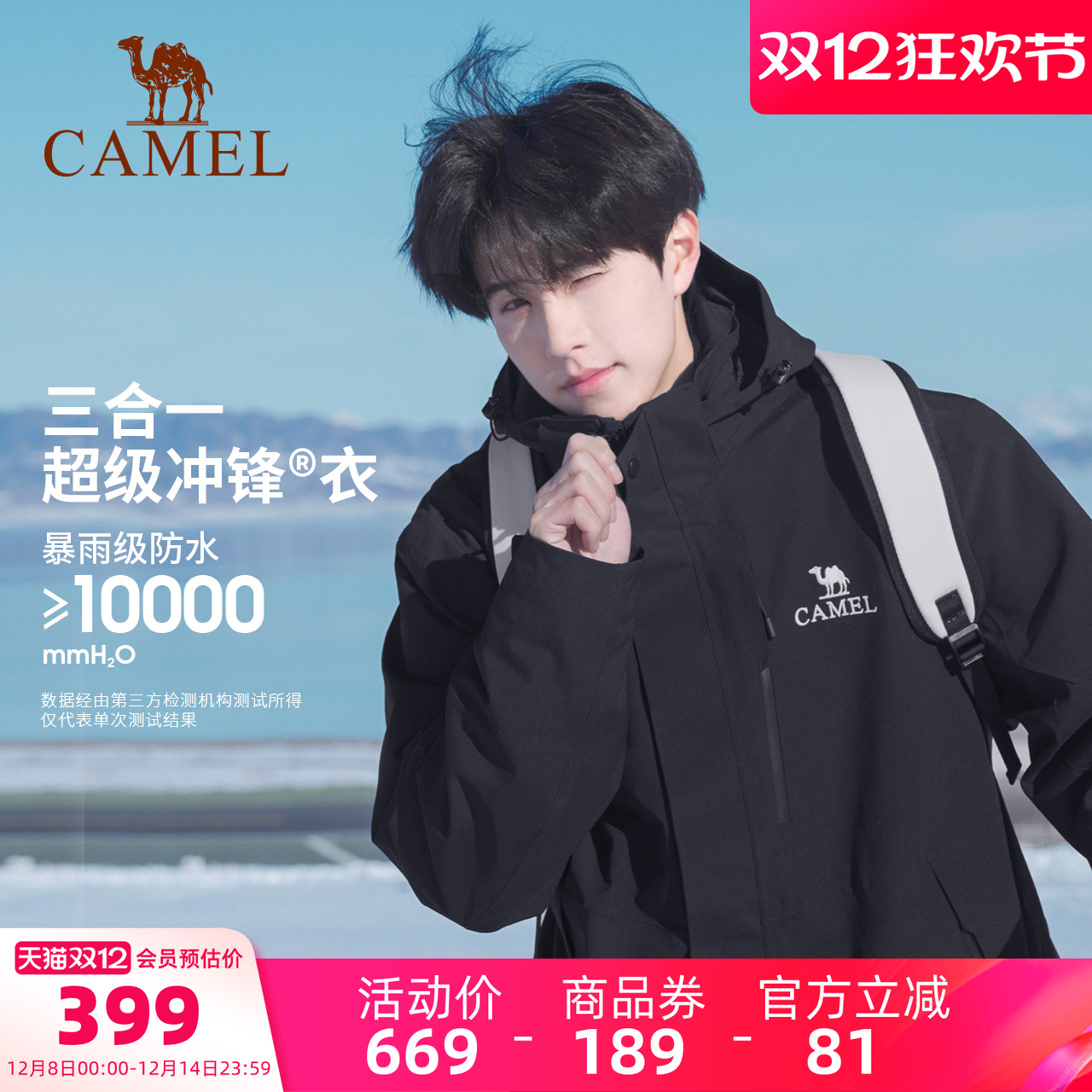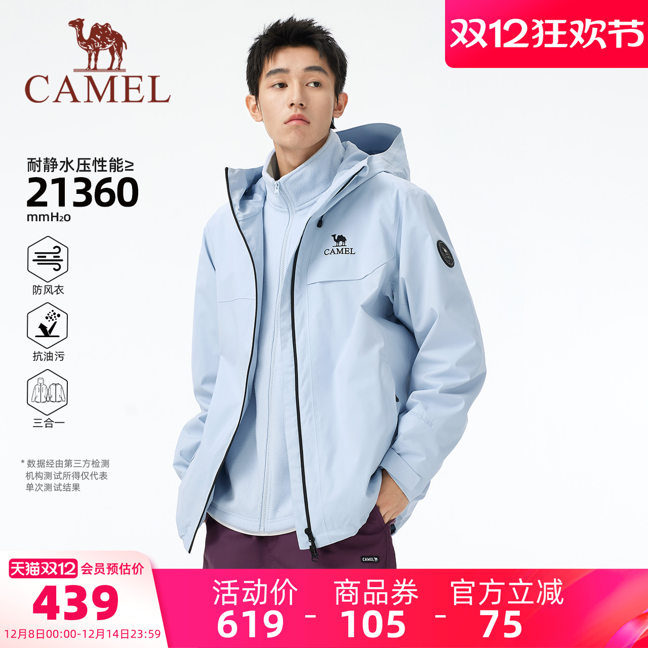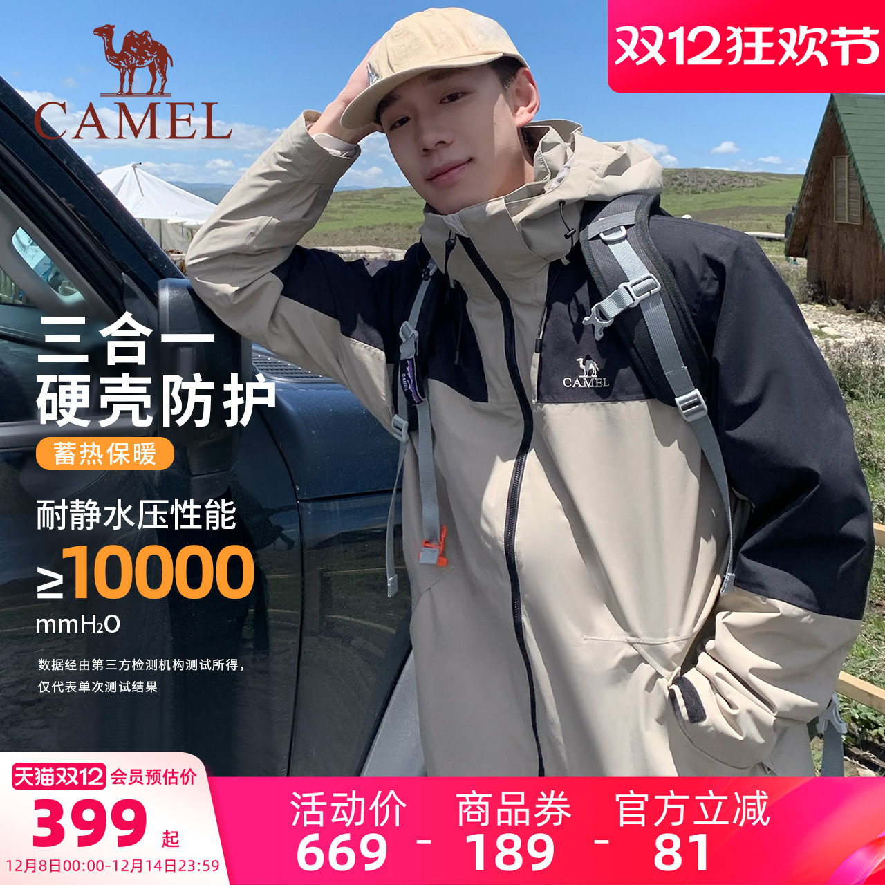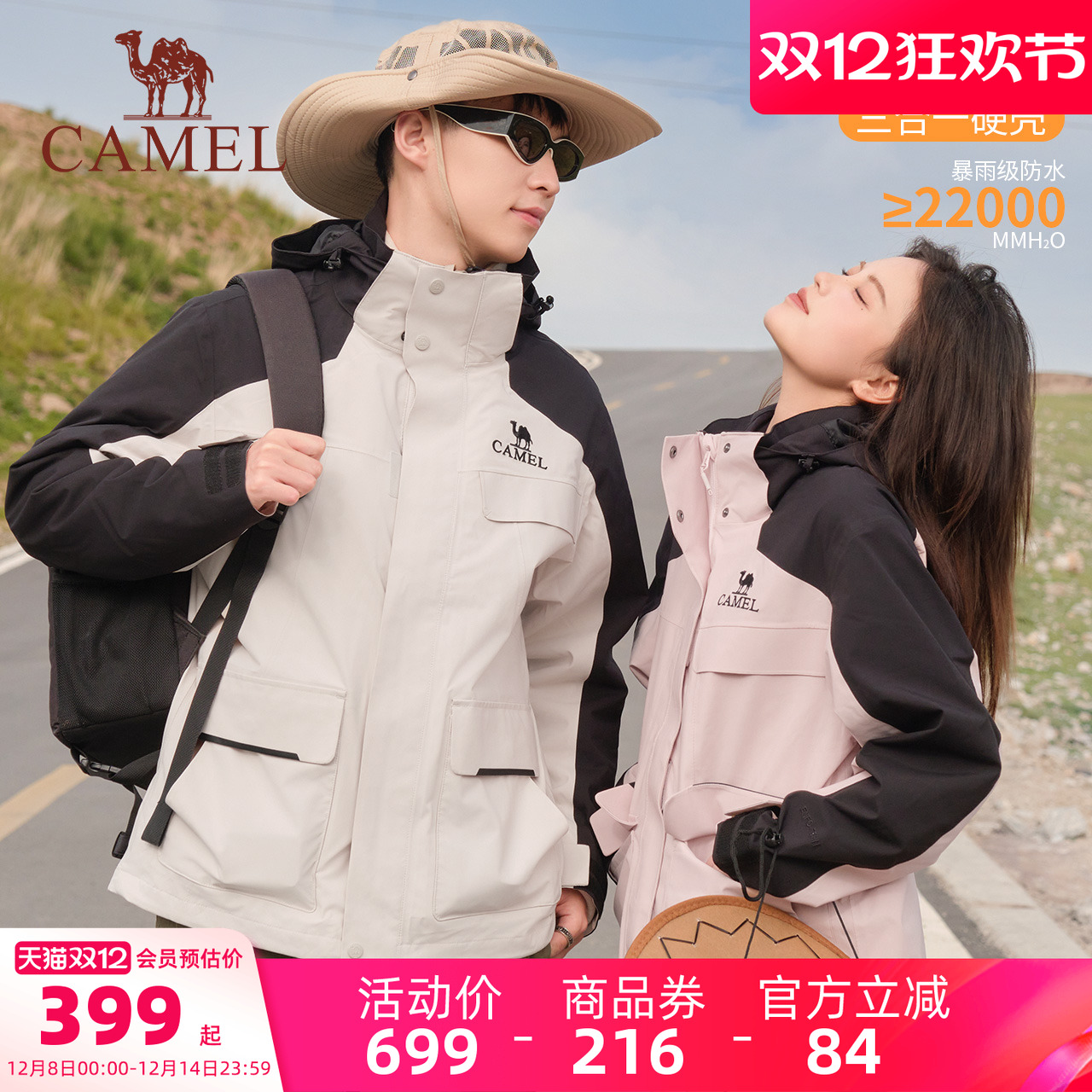 骆驼男装三合一内胆冲锋衣男女新款防泼水登山服夹克外套户外运动