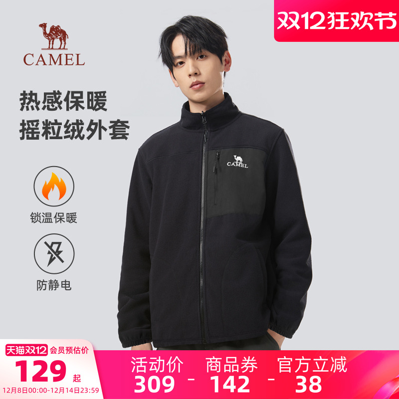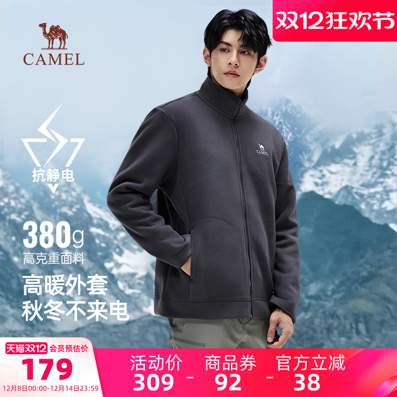 骆驼男装抓绒外套春秋新款防风保暖摇粒绒开衫夹克冲锋衣内胆户外
