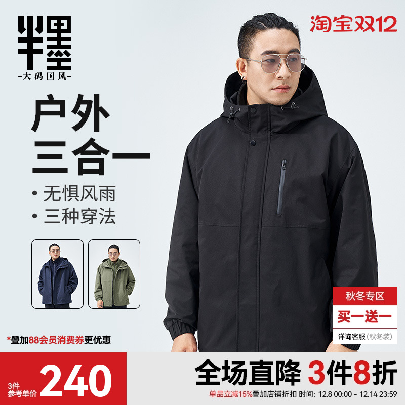 半墨大码男装冲锋衣式外套男士冬季新款防风户外三合一工装夹克男