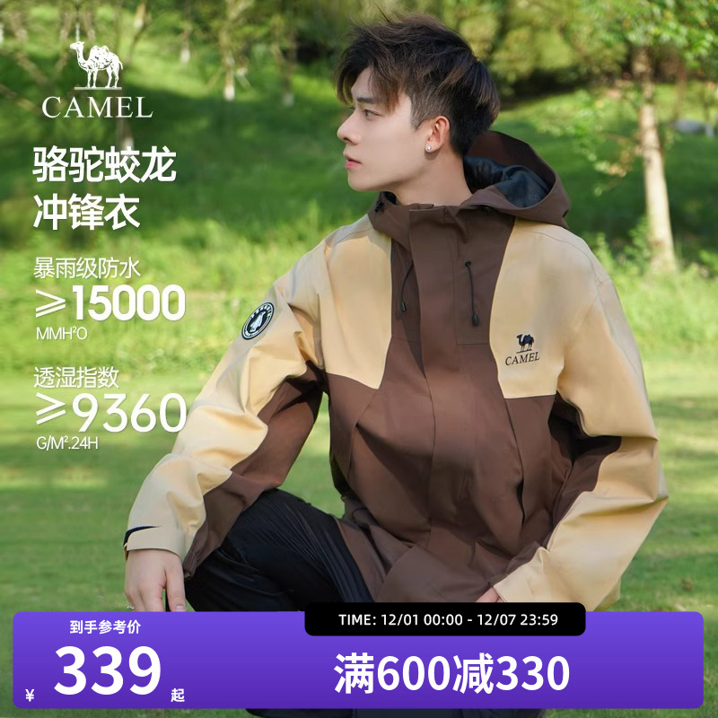 骆驼男装三防冲锋衣男徒步登山服透气户外防风防水单冲夹克薄外套