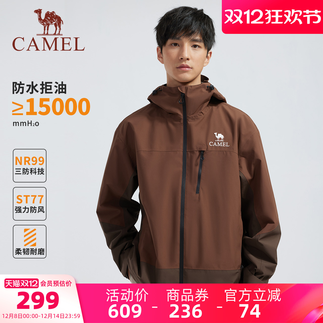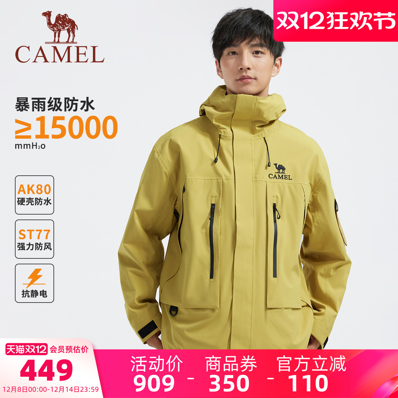 骆驼男装撞色拼接硬壳防水夹克外套男户外登山防暴雨冲锋衣AK80