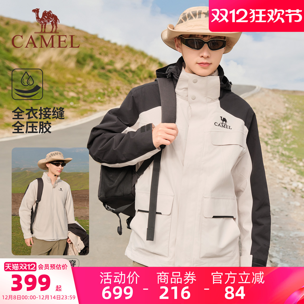 骆驼男装户外冲锋衣男款三防三合一夹克外套暴雨级内胆摇粒绒登山