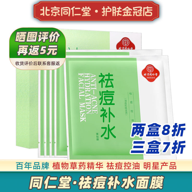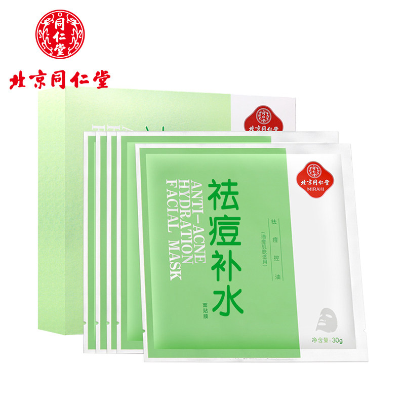 北京同仁堂祛痘补水面膜男女控油保湿专用植物粉刺痘痘油痘肌肤去