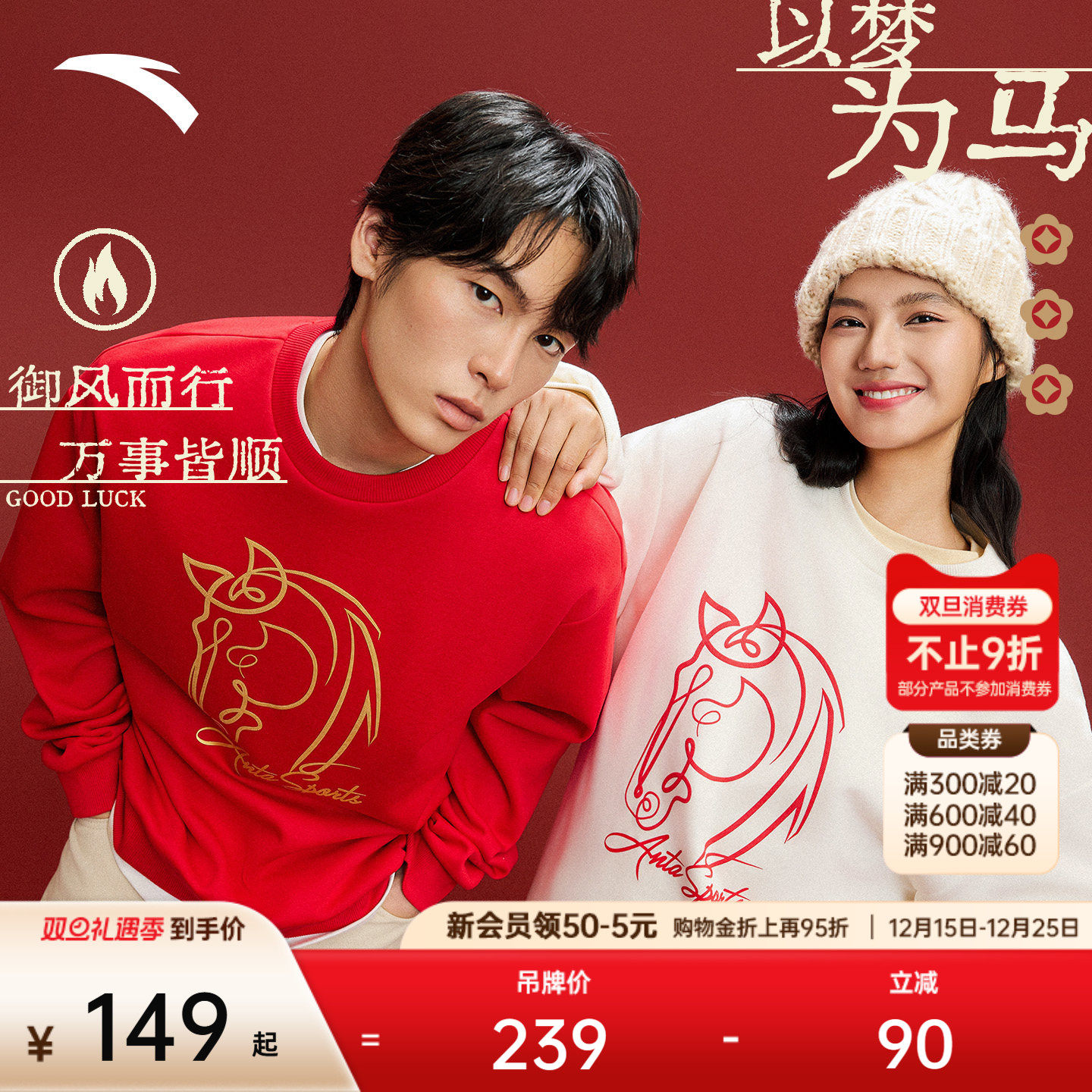 安踏好事发生丨以梦为马加绒卫衣新年男女同款冬季休闲套头衫上衣