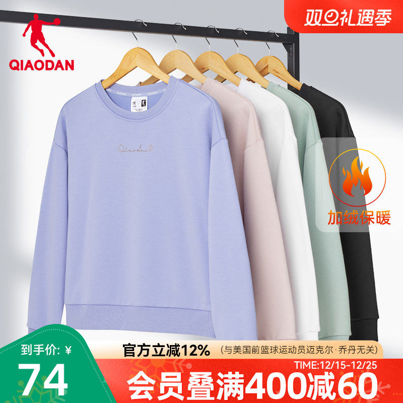 乔丹运动卫衣女冬季新款女士休闲透气透气宽松圆领加绒保暖上衣潮