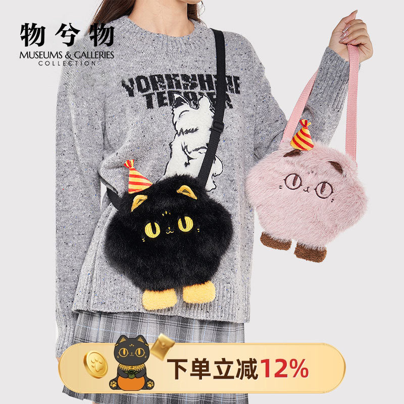 物兮物x大英博物馆猫咪可爱包包毛绒卡通斜挎包初中生生日礼物女