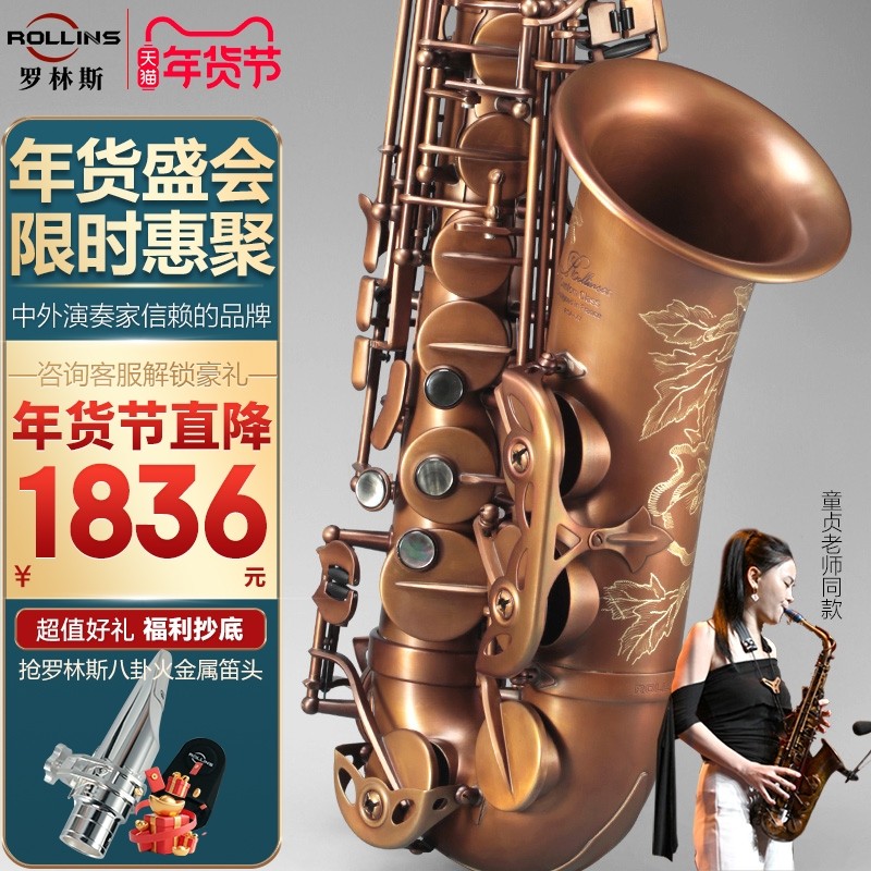 ROLLINS法国罗林斯萨克斯管乐器中音降e调正品演奏级X7裸铜款成人