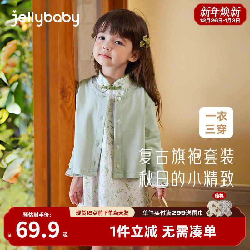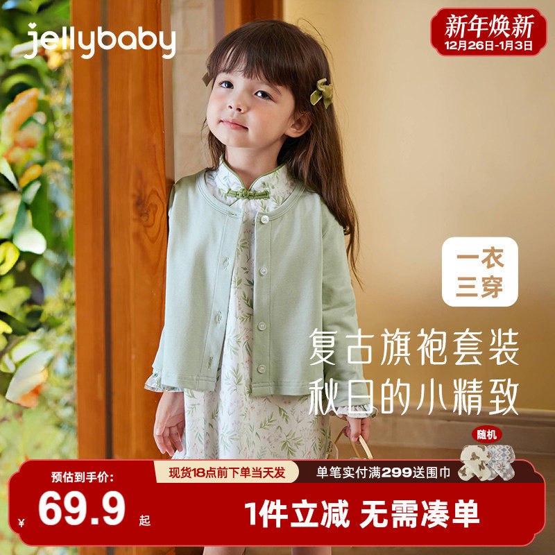 女童连衣裙秋冬5儿童两件套新中式碎花春小童冬装洋气2岁宝宝裙子