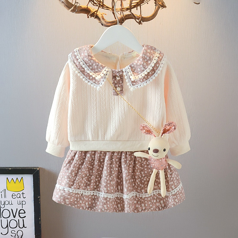 女宝宝连衣裙套装秋装背带裙一三5四岁女童春秋长袖T恤裙子两件套