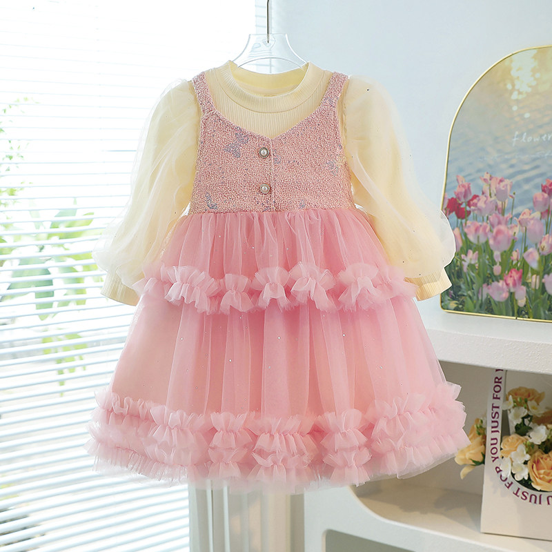 5岁女童春秋新款连衣裙洋气假两件公主裙4岁小女孩生日蓬礼服裙子