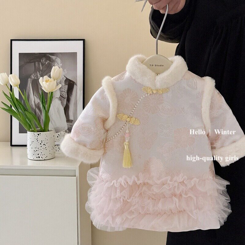 3岁女童秋冬加绒新款连衣裙洋气4宝宝公主裙5岁小女孩旗袍过年服