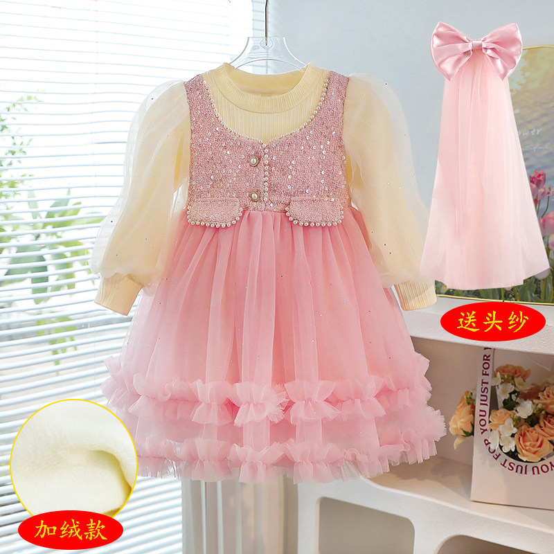 5岁女童连衣裙春秋新款洋气3宝宝假两件套公主裙冬加绒生日礼裙子
