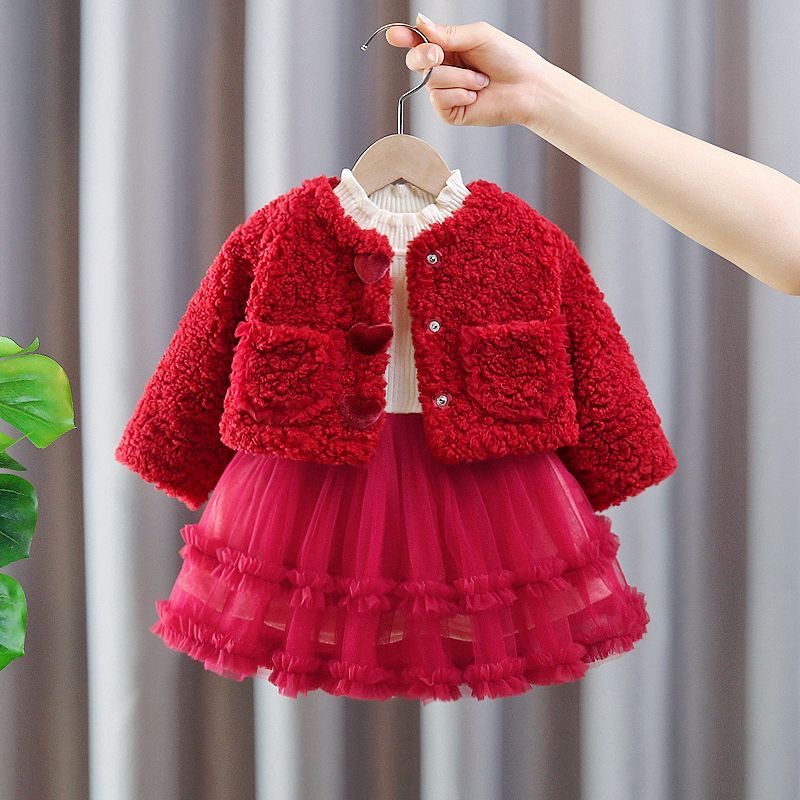 女童连衣裙秋冬款2024新款儿童加绒套装1一5岁宝宝周岁生日公主裙