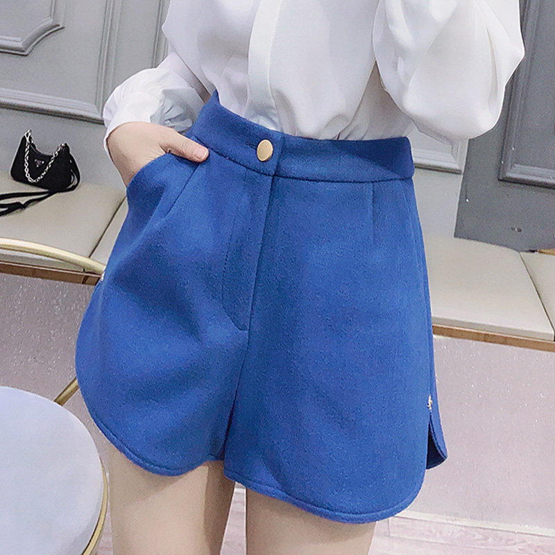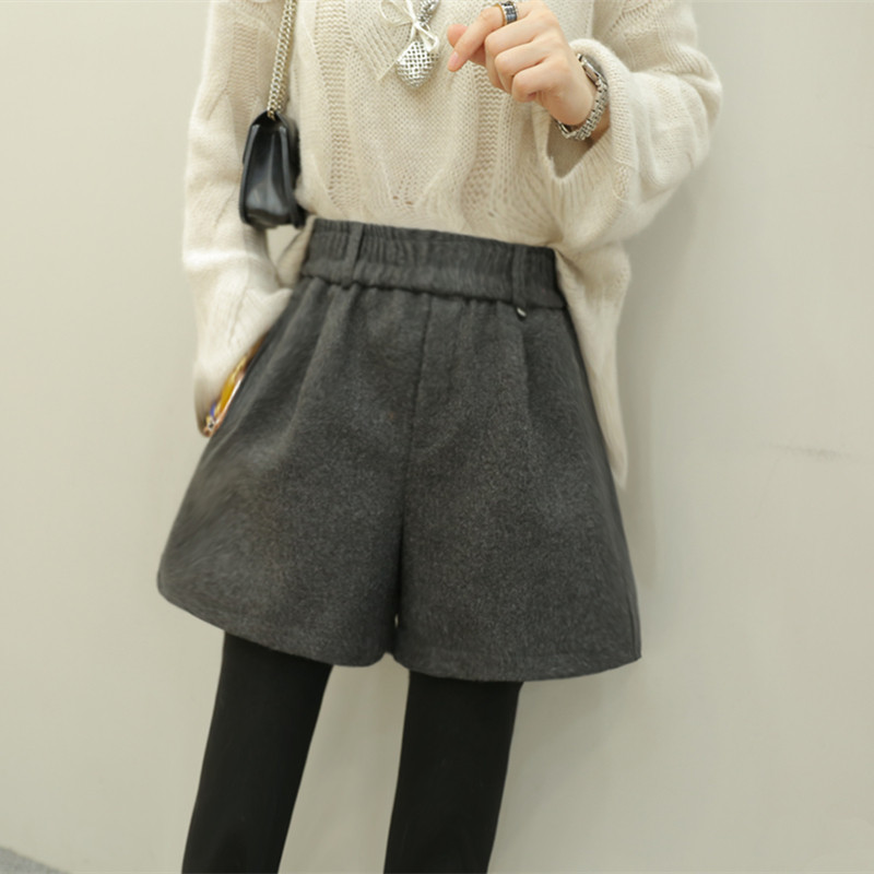秋冬加厚呢子短裤宽松高腰显瘦A字毛呢防走光阔腿靴裤 WC643