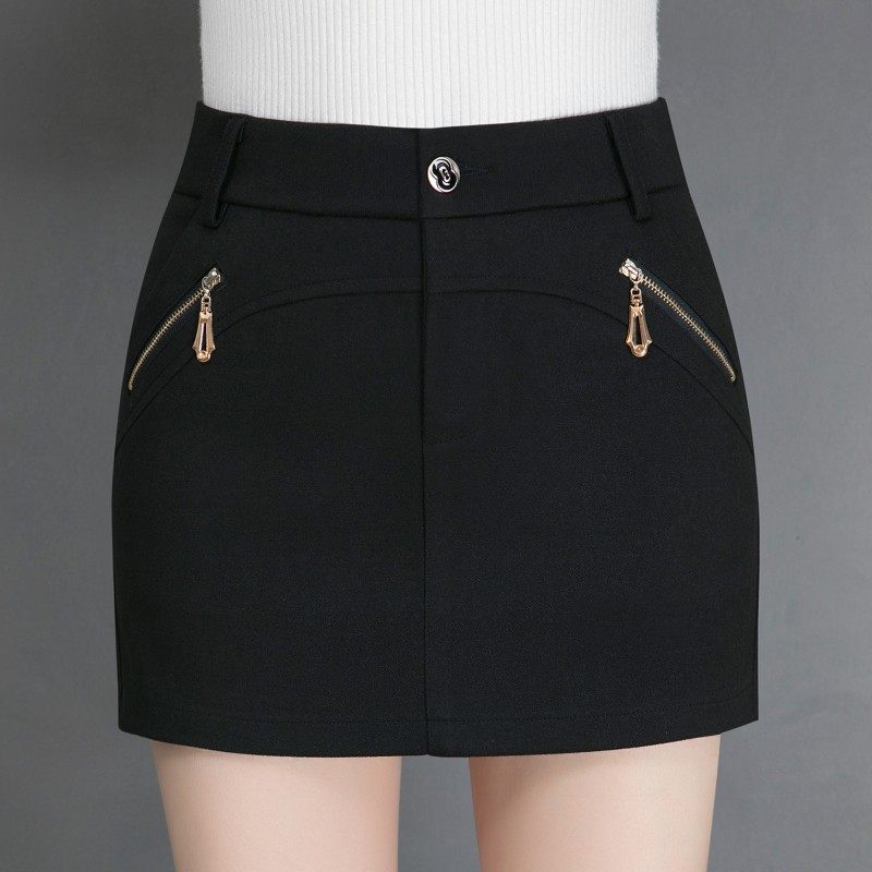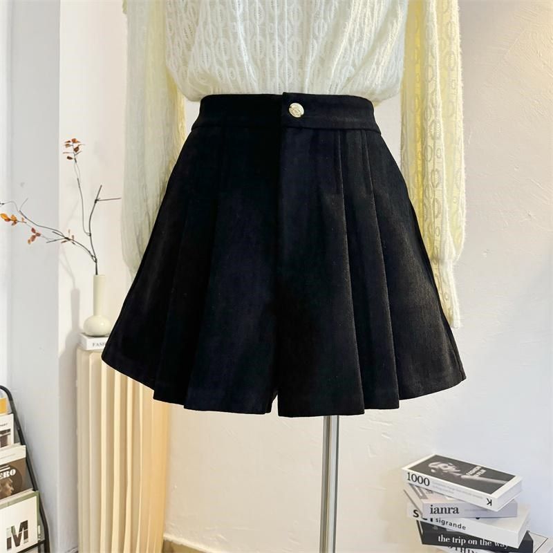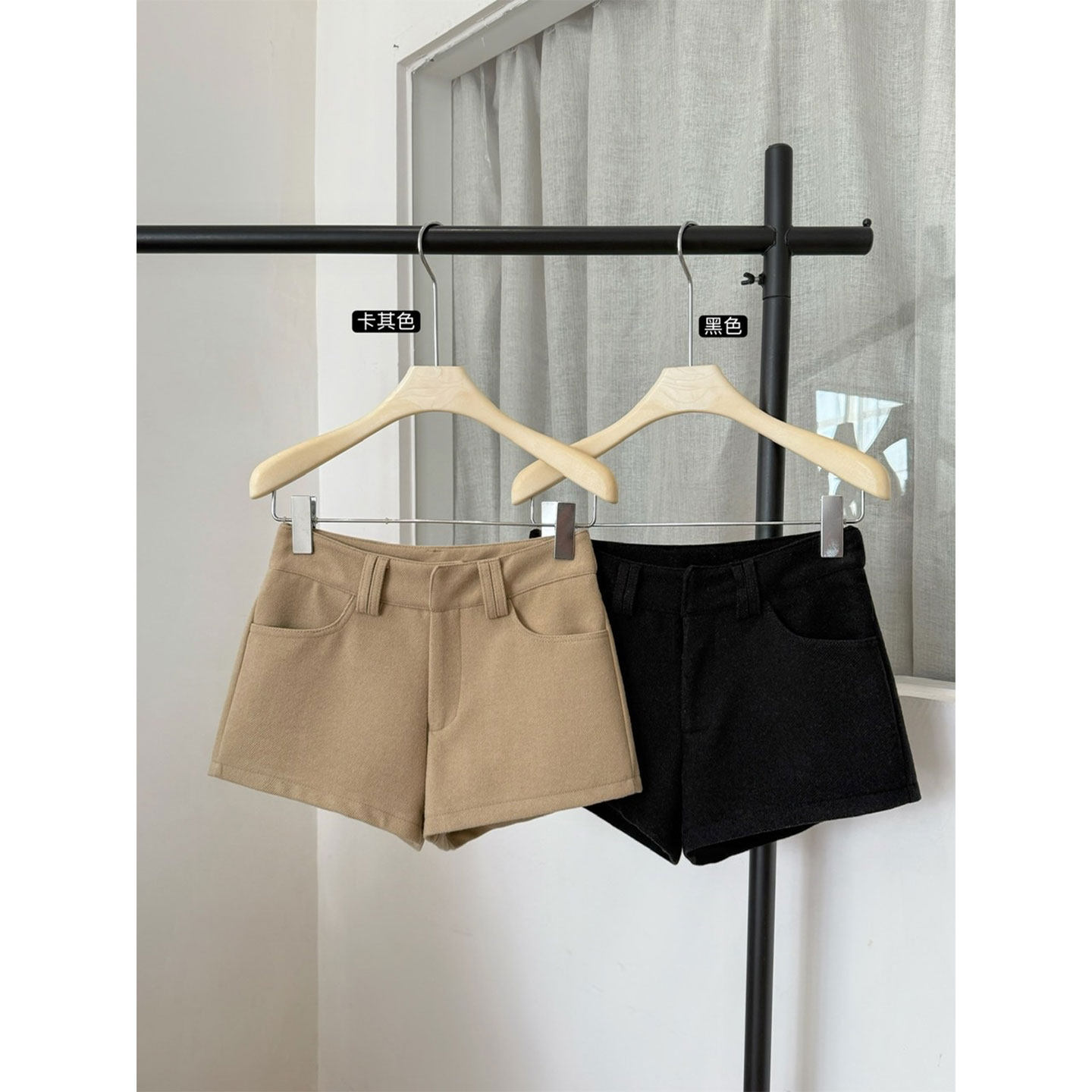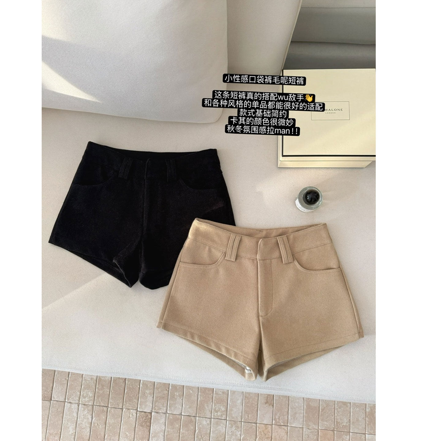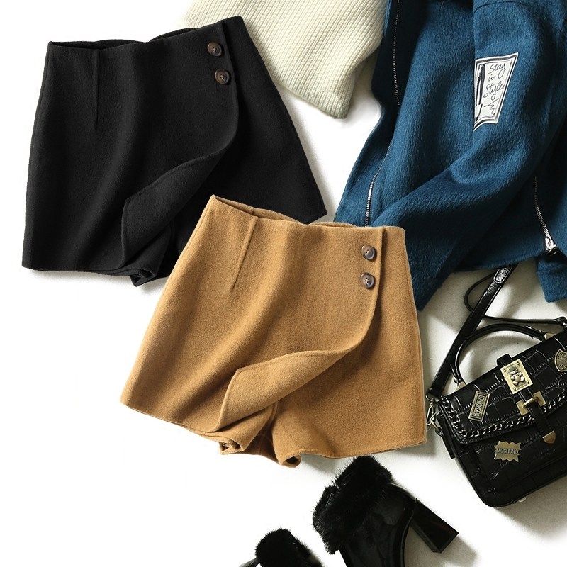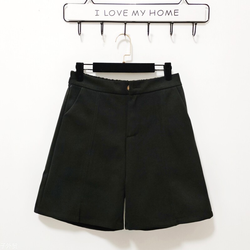 D05046日单秋冬新款客供后松紧高腰显瘦无纽扣女纯色气质呢子短裤