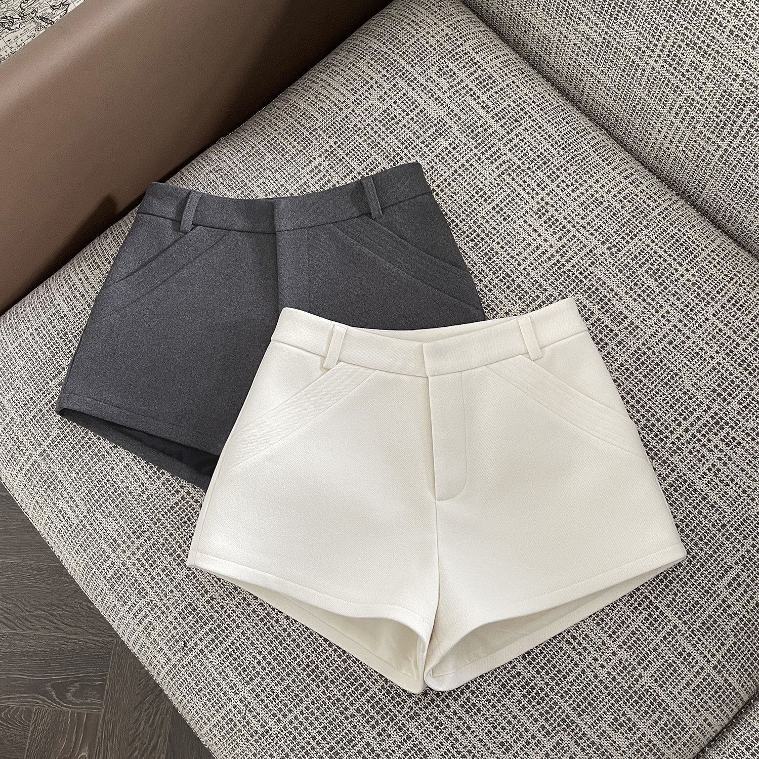 白色毛呢短裤女冬季A字高腰灰色呢子短裤显瘦直筒百搭休闲靴裤子