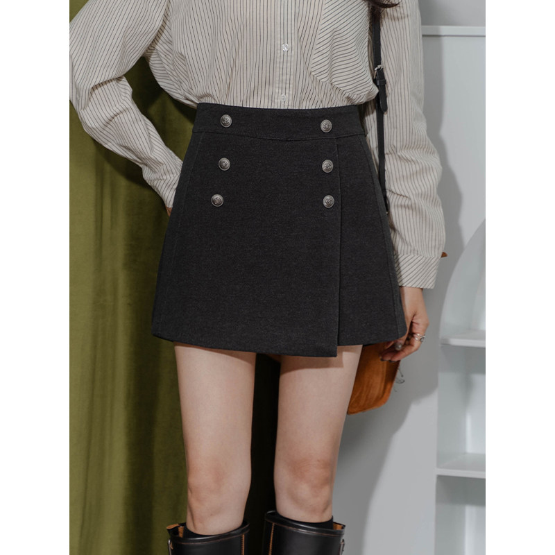 不对称毛呢裙裤女设计感双排扣装饰复古高腰A字百搭阔腿呢子短裤