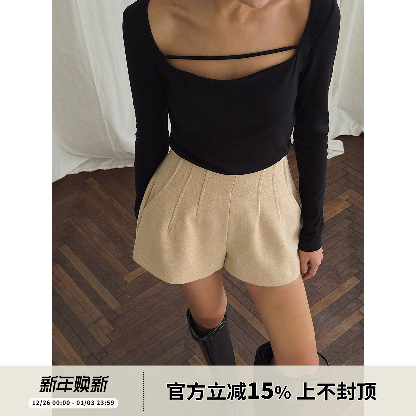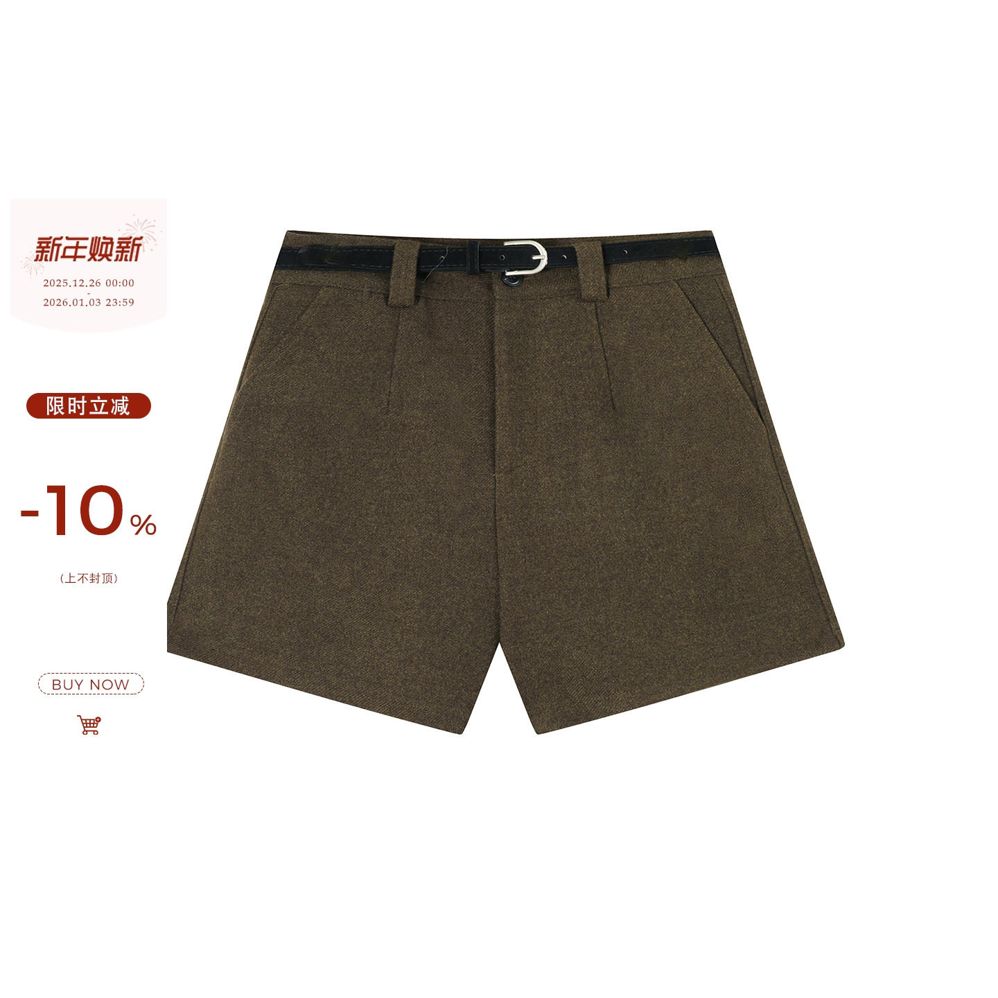 丽系列高腰阔腿显瘦简约百搭含羊毛呢子短裤女25冬装新款品牌折扣